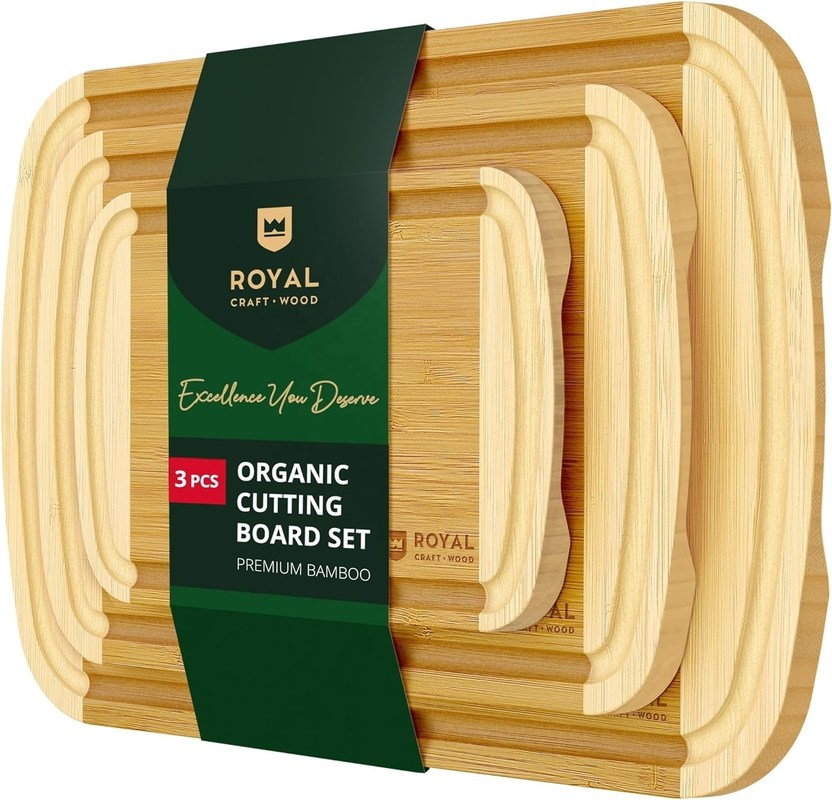 Set de tablero de corte de madera de bambú rectangular con accesorios de cocina incluidos