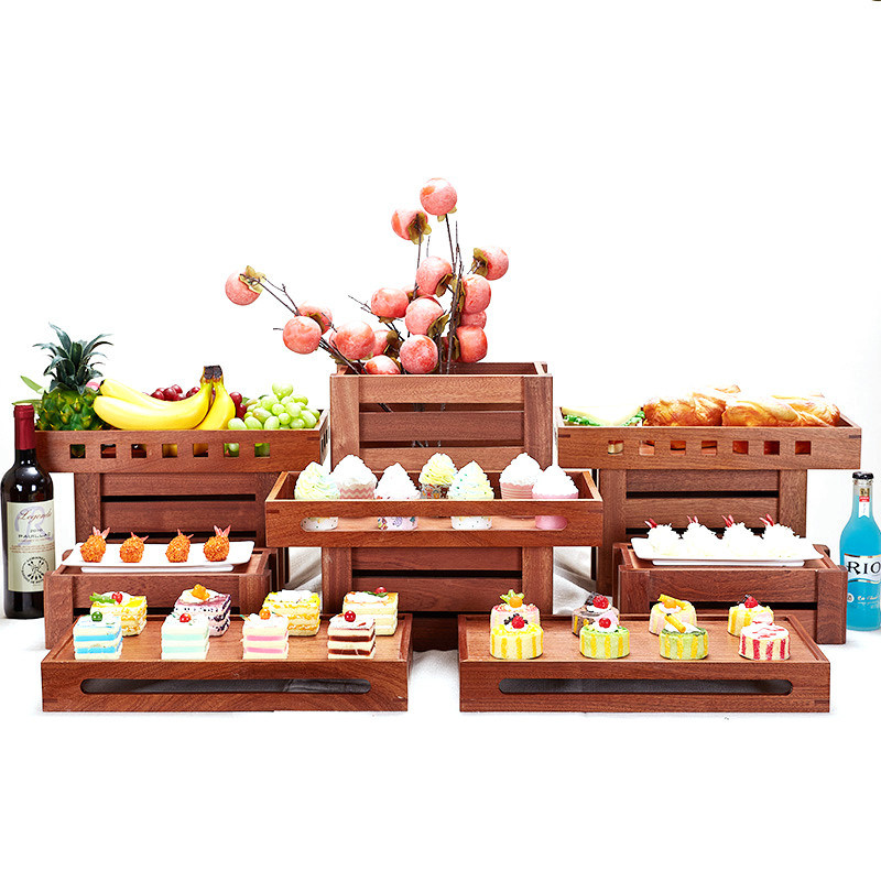 Logotipo personalizable aceptable 3 niveles de madera tarta de frutas de exhibición para postre