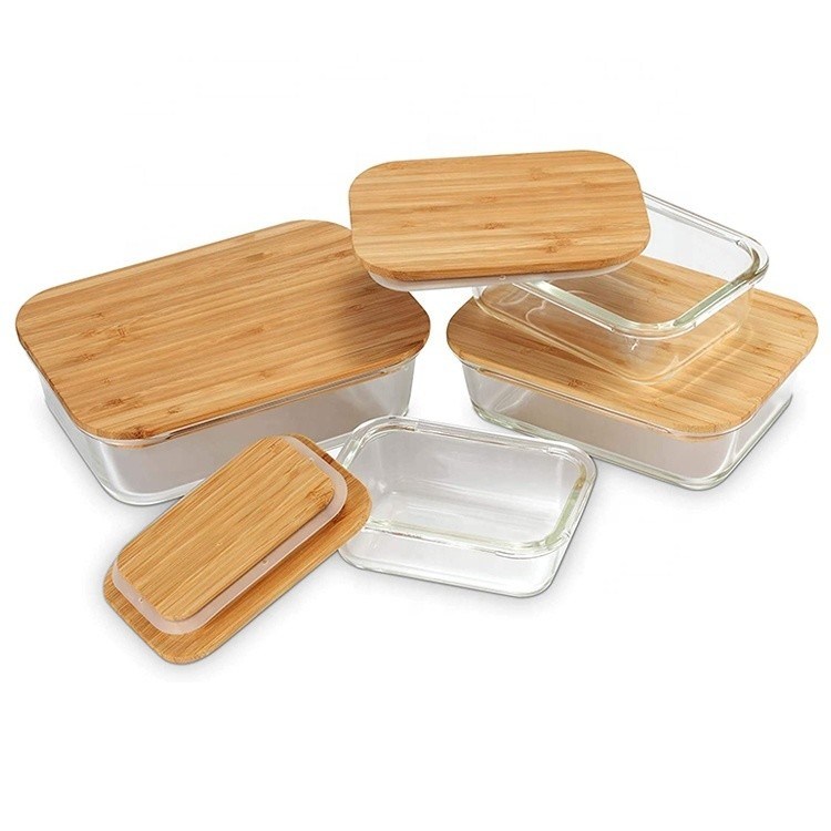 CABERAS de bambú ajustadasLos contenedores de vidrio con silicona hacen más que ahorrar dinero, conservando alimentos frescos más tiempo, seguros para los alimentos, seguros para el océano.Los sellos de silicona extraíbles funcionan perfectamente para ocupados, familias felices que tienen mejores cosas que hacer que limpiar el desastre en el refrigerador.